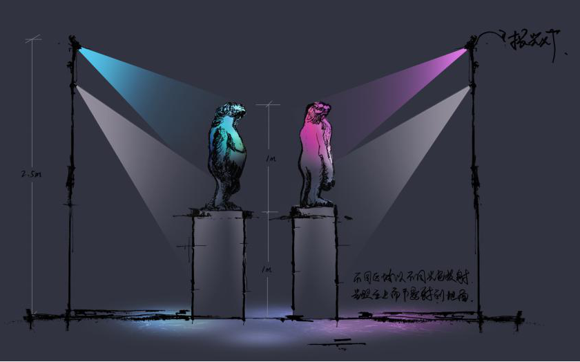 此次雕塑展作品點(diǎn)亮由信達(dá)科技捐助設(shè)計(jì),信達(dá)合作伙伴羅萊迪思捐助燈具。董事長(zhǎng)王春龍先生親臨現(xiàn)場(chǎng)考察,帶領(lǐng)團(tuán)隊(duì)根據(jù)雕塑不同形態(tài)和形象進(jìn)行燈光設(shè)計(jì)。