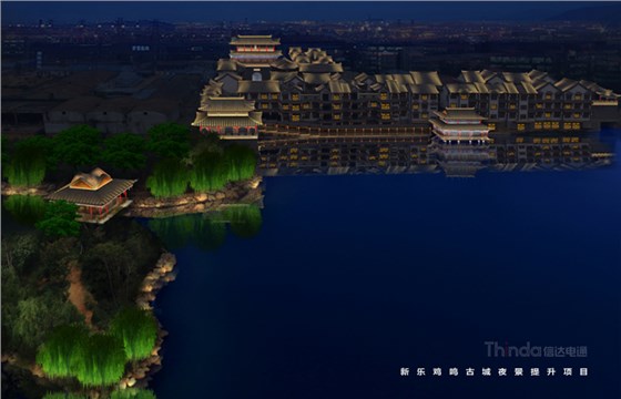 亮化設計從宏觀和微觀兩種尺度入手:在宏觀上強調整體性,建立清晰的夜景結構并區分主次,體現青磚黛瓦,淡雅風華,那種褪盡喧囂之后的寧靜和內斂。在微觀上,以人為本實現照明的舒適性,營造溫馨雅致的光環境。本案中雞鳴古城亮化設計將主入口處城樓及親水樓臺為高亮度區域,沿街立面烘托商旅氛圍為中亮度,建筑頂部營造靈境、淡雅的光環境,弱化表現為低亮度區域。主體光色以暖光呈現,靜態光為主。燈光主要體現其渾厚、大氣的建筑結構,打造整體感與形態美,滿足建筑自身功能和精神需求的同時,突出顯著入口標志。以間隔小投光形式呈現,突出入口醒目標志和節點設計。拒絕大面積重彩潑墨,以投光進行小范圍營造,點綴成景,留白處理,避免喧鬧、浮華,營造靜謐、文雅的氛圍。燈光錯落有致,層次分明,有熱鬧活力的商旅氛圍,也有溫馨雅致的古典情懷,使人漫步其中,移步異景,感受她的舒適與雅致。