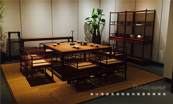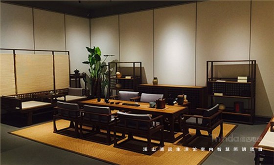 溪山清遠生活館是其公司在北京朝陽區設立的明式、宋代家具主題生活館。溪山清遠探究家具,是探究一種回歸。俗韻已行,塵網誤落,陶淵明欣慨之意,宜適今日??醇娂姅_擾,無休無歇,勞心廢形,永無止息。溪山清遠就是在居住意境上去建設一條回歸的曲徑,精簡,守靜,歸真。信達科技是溪山清遠生活館室內空間照明的設計及施工、控制系統一體化服務單位。