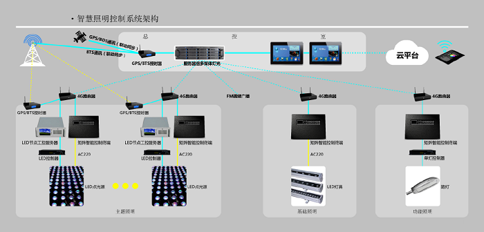 此次燈會采用云智能照明控制系統,采用遠程控制和互聯網技術,4G或WiFi通信結合,實現云平臺對投影、音樂、路燈、裝置的遠程或本地統一調控。為智能、便捷、交互的新春夜景提供強有力的技術支持。